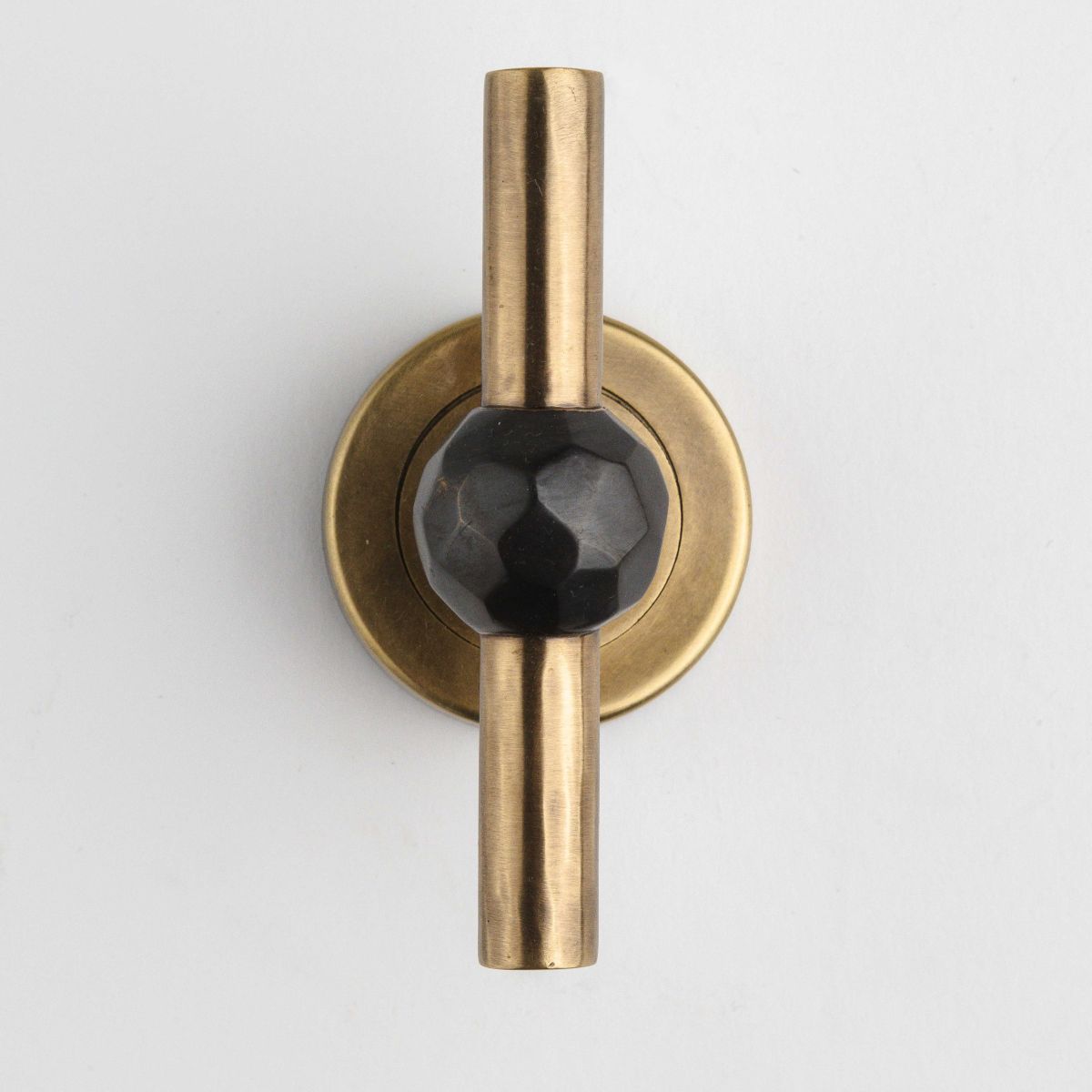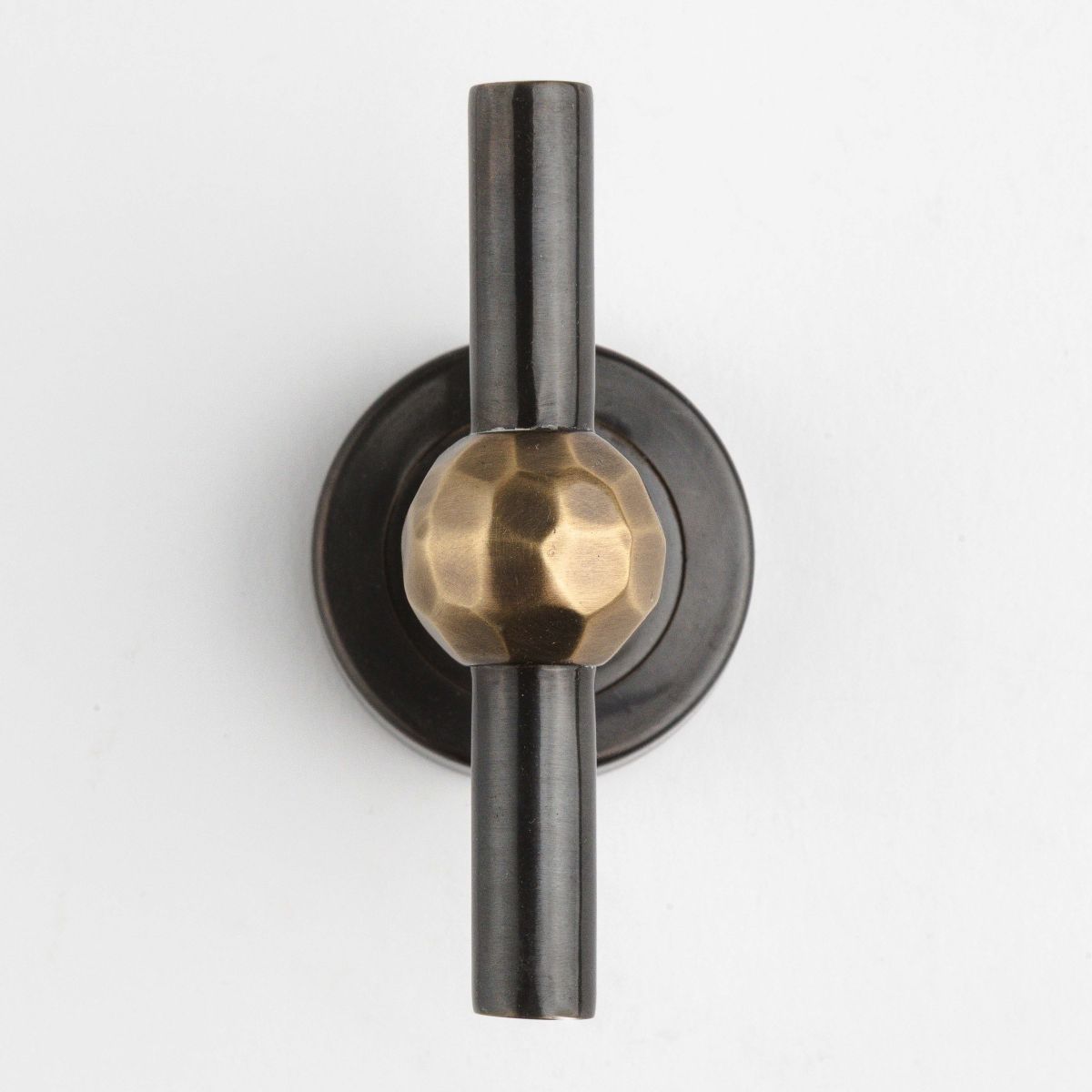 Le bouton central en laiton martelé or vieilli crée un contraste subtil avec la patine canon de fusil, jouant sur les textures et les finitions. Fabriquée en laiton, cette poignée bénéficie d’une grande résistance et d’une longévité naturelle, garantissant un usage durable sans altération.